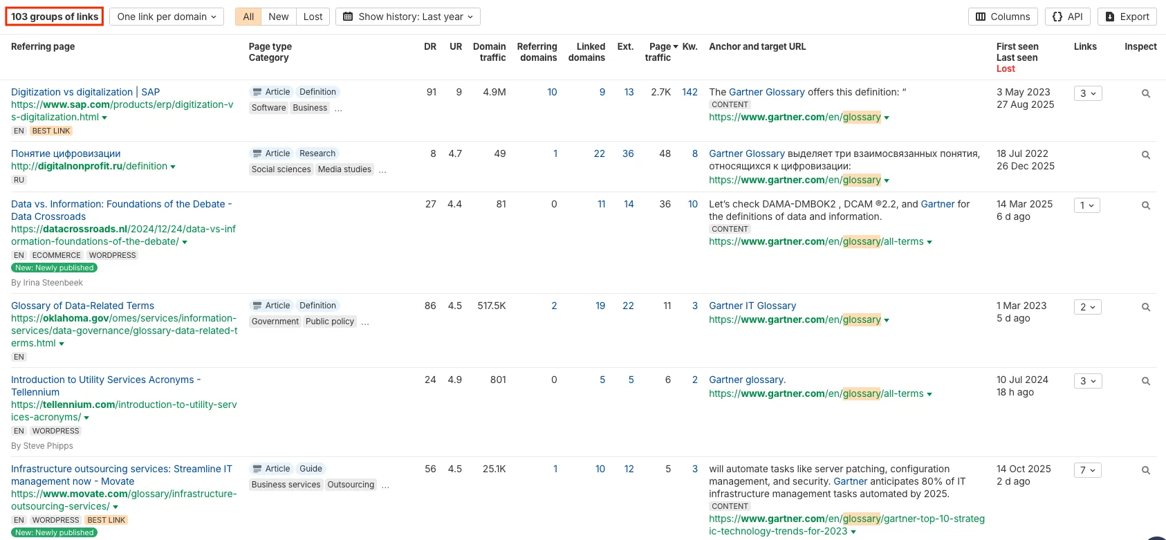 👉 Real example: Gartner’s Glossary has pulled in tens of thousands of backlinks since 2019. It’s become the go-to reference for finance and tech terminology.